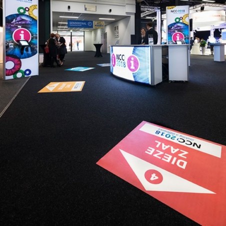 Bedrukt vloerzeil is daarmee een ideale keuze als je snel en relatief eenvoudig een professionele beursvloer wilt neerleggen. Je maakt van de vloer een volwaardig communicatiemiddel dat perfect aansluit op je wanden, balie en overige signing. Of je nu kiest voor een strakke huisstijlvloer, een opvallende campagnevloer of een speelse looproute: met vloerzeil zorg je ervoor dat bezoekers al bij hun eerste stap in jouw wereld belanden.