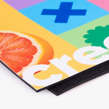 Het vloerzeil is een speciaal vloervinyl dat is ontwikkeld voor beloopbare toepassingen. De bovenkant heeft een licht gestructureerde, matte toplaag die zorgt voor grip en een nette, professionele uitstraling. De onderzijde is meestal licht geschuimd of vlak uitgevoerd, zodat het zeil comfortabel aanvoelt en zich goed voegt naar de ondergrond. Dankzij de full colour print heb je alle vrijheid in je ontwerp: van subtiele patronen tot grote foto’s, looproutes of opvallende actievlakken.