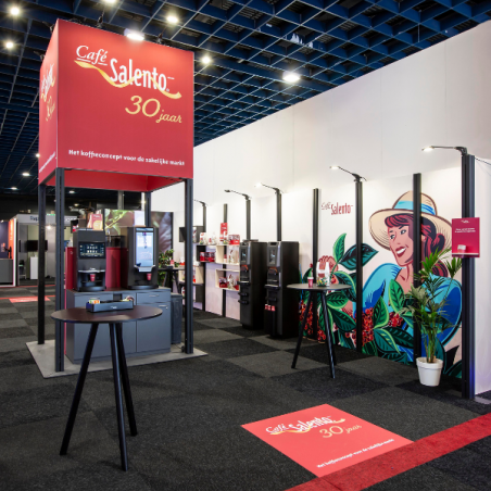 De voordeel zit in de combinatie van gemak en flexibiliteit. Op- en afbouw gaat snel en zonder gereedschap, zodat je team niet uren bezig is met standconstructie. De complete beursstand kan na afloop compact worden ingepakt en past vaak gewoon op één rolcontainer of in een busje. Dat scheelt tijd, opslagruimte en logistieke kosten. Heb je later een andere standmaat of indeling nodig? Dan vul je het systeem eenvoudig aan met extra staanders en panelen, in plaats van opnieuw te beginnen.