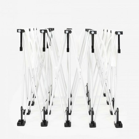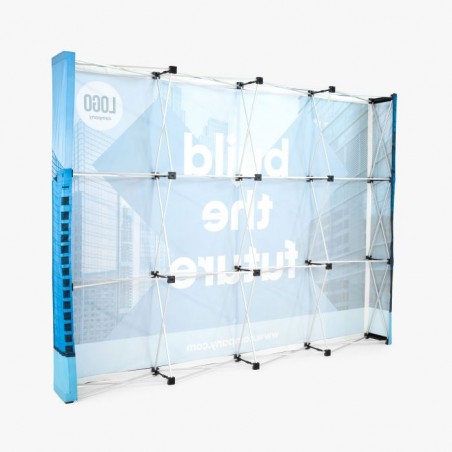 Ook qua gebruiksgemak zit je goed. Het frame vouw je uit tot een volledig presentatierechte wand en het doek bevestig je met klittenband rondom, zodat het mooi strak gespannen staat. Na afloop verdwijnt alles weer in de stevige trolleytas op wieltjes. De rechte beurswand is daardoor ideaal voor teams die vaak onderweg zijn en hun presentatiesystemen zelf willen meenemen en opbouwen. Combineer de wand met een beursbalie, roll-up banner of LED-spot en je hebt in korte tijd een complete, professionele stand ingericht.