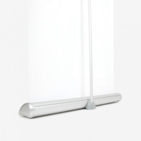 De roll-up banner Deluxe herken je direct aan de cassette. In plaats van losse uitklapvoeten staat het systeem op een volledig, verzwaard basisprofiel dat zorgt voor stabiliteit én een hoogwaardige uitstraling. De afgeronde vormen en nette afwerking laten de cassette meer opgaan in de omgeving, zodat de focus volledig op de print ligt. Dat maakt deze banner heel geschikt als vaste presentatiewand in representatieve ruimtes of bij intensieve beursdeelname.