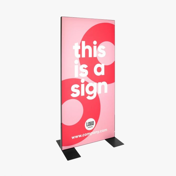 Een vrijstaand textielframe voelt zich perfect thuis op beurzen en evenementen. Het vormt een volledige presentatiewand waar je in één keer een helder merkbeeld op kwijt kunt: logo, pay-off, sfeerbeeld en eventueel een productfoto. Door de textielprint oogt de wand modern en warm, zonder glans of spiegelingen. Bezoekers zien jouw boodschap al van een afstand, terwijl de wand van dichtbij juist een rustige achtergrond vormt voor gesprekken en demo’s. Dankzij de vrijstaande voeten kun je het frame overal neerzetten, ook als er geen wanden of ophangpunten beschikbaar zijn.