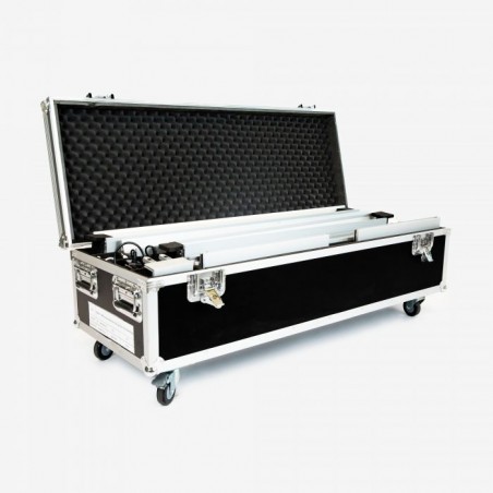 De LED beurswand wordt geleverd als complete set in een stevige kist op wielen, inclusief twee doeken, verlichting en benodigd gereedschap. Afhankelijk van het formaat ligt het totaalgewicht tussen grofweg 50 en 70 kilo en wordt de kist op een pallet geleverd; bij grotere wanden is een heftruck op locatie handig of zelfs noodzakelijk. In de koffer vind je alle onderdelen overzichtelijk ingedeeld en zitten zelfs handschoenen erbij om de doeken schoon te houden tijdens de montage. Met behulp van de meegeleverde handleiding zet je de wand stap voor stap op tot een stabiel, verlicht geheel.