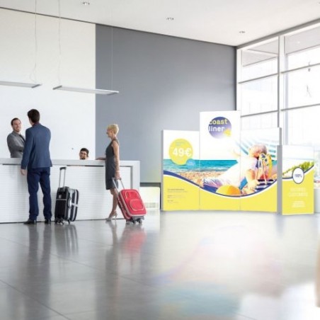 Het Pixlip Go frame is een lichte, verlichte beurswand die je zó meeneemt en in een paar minuten opbouwt. Het frame bestaat uit stevige, maar toch lichte kunststof profielen met ingebouwde LED-verlichting en textielprints aan beide zijden. Daardoor heb je in één systeem direct twee grote, verlichte vlakken voor je boodschap. De peesdoeken zijn eenvoudig te wisselen, zodat je per beurs, campagne of seizoen een andere print kunt tonen. Dankzij het lage gewicht, de handige transporttas en het plug-in systeem zonder gereedschap is Pixlip Go ideaal voor iedereen die regelmatig op pad is en toch een opvallende, professionele lichtwand wil neerzetten.